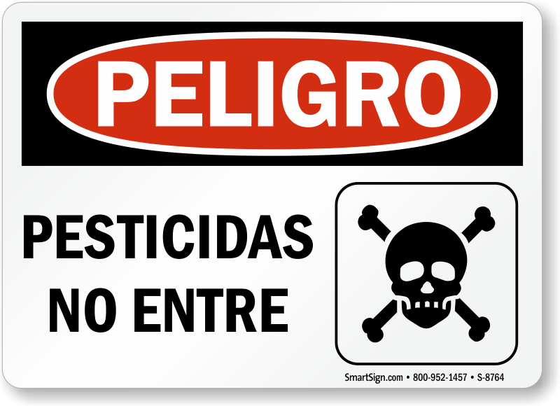 Spanish Danger Sign: Pesticidas No Entre (with Skull and Bones Danger Symbol)