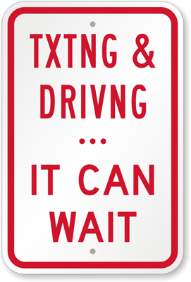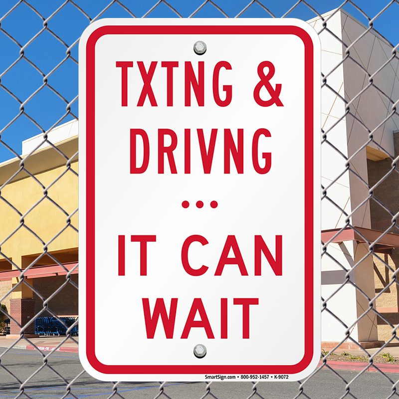 Driving Rules Sign: Texting & Driving It Can Wait K-9072 Learn More...