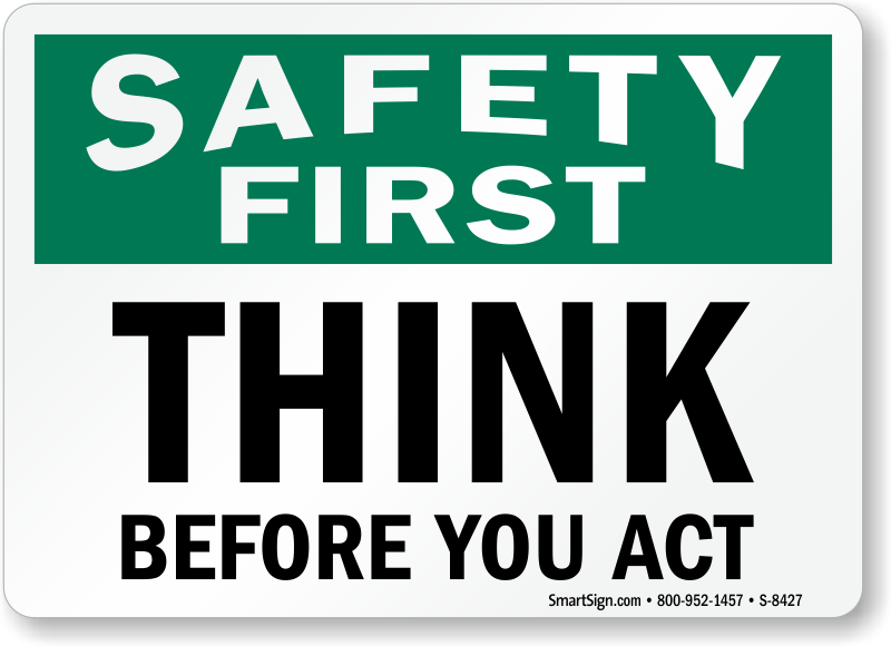 OSHA Safety First Sign: Think Before You Act