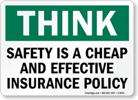 Insure all your employees with a Think Sign. Safety is Insurance Signs help prevent accidents.