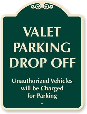 24" X 18" SignatureSign: Valet Parking Drop Off Unauthorized Vehicles Will Be Charged For Parking K-8667 Learn More...