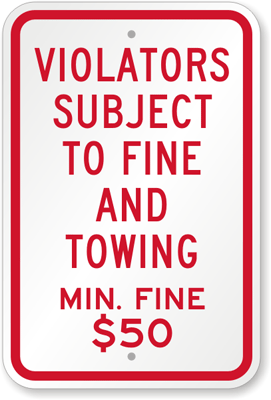 Tow-Away Sign: Violators Subject To Fine And Towing Min. Fine $ 50 K-8426-50 Learn More...