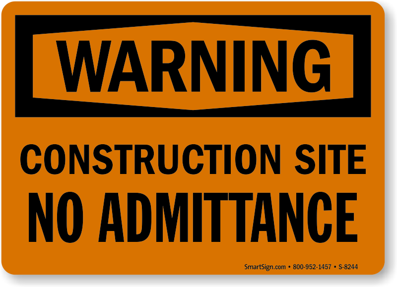 A bold Construction Site No Admittance Sign sends a direct message. Construction Site Signs increase safety around your site.