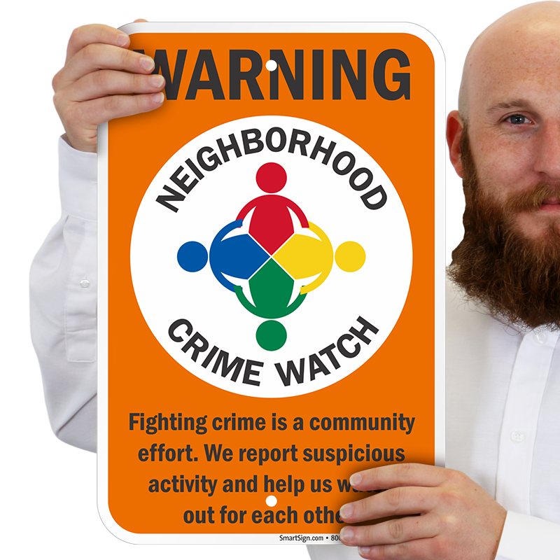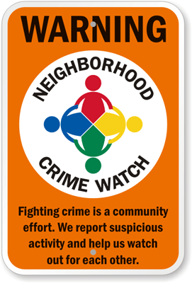 Neighborhood Crime Watch Sign: Warning - Fighting Crime Is A Community Effort, We Report Suspicious Activity And Help Us Watch Out For Each Other K-9116 Learn More...