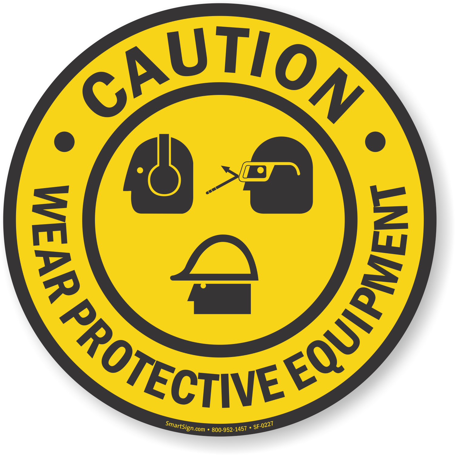 Your employees are best when they can see, hear, and think. Advise them to wear protective equipment with this yellow and black floor sign.