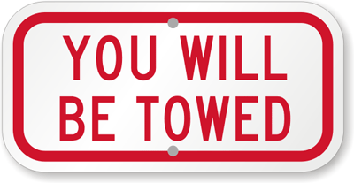 Keep it simple and get to the point with this You Will Be Towed Sign.