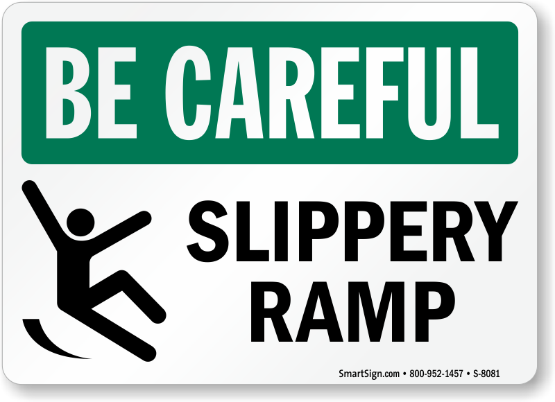 Be safe, don't be sorry. A simple Be Careful Sign is an effective way to draw attention towards slippery ramp.