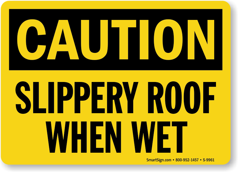 Wet roofs can be dangerous and employees might be ignorant about it. This OSHA Caution 'Slippery Roof When Wet' sign can help prevent an accident in your facility.