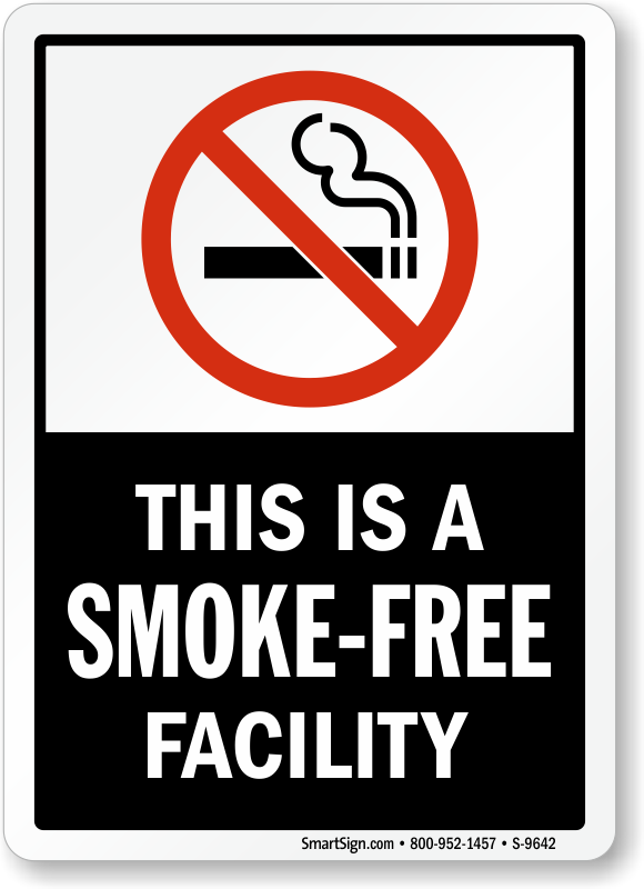 No Smoking Sign: This Is A Smoke-Free Facility (with symbol) - black vertical S-9642