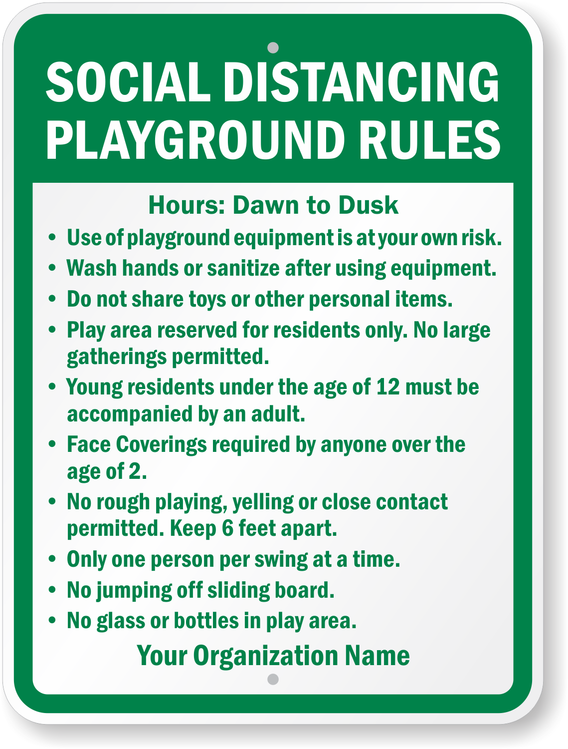 Add your own rules related to social distancing or anything else that promotes safety on the playground.