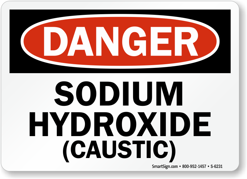 Exposure to Sodium Hydroxide can lead to chemical burns. Alert all workers to be careful while handling caustic soda by posting this OSHA Danger Sign.