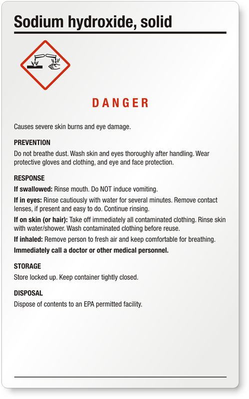 Alarm your employees against hazardous chemicals like Sodium Hydroxide in your facility with GHS Chemical Label. Timely information can save lives.