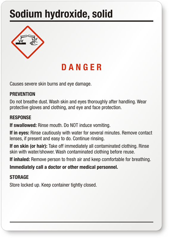 Make safety your priority at work! Mark hazardous Sodium Hydroxide chemical containers with our informative GHS label.