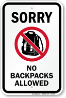 No Backpacks Allowed Sign: Sorry No Backpacks Allowed K2-4300