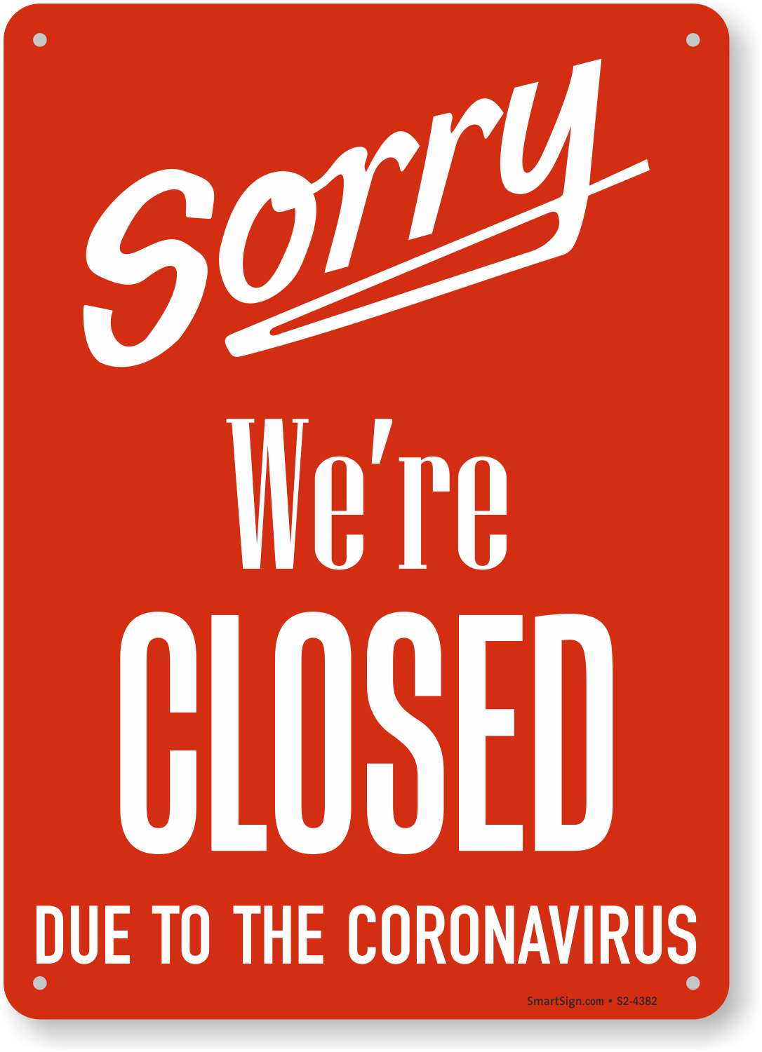 Retail Service Sign: Sorry We're Closed S2-4382
