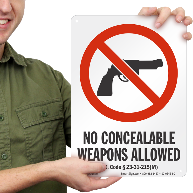 Prohibit concealed weapons on your property in South Carolina by posting this S.C. Code § 23-31-235 complaint Gun Control Law Sign