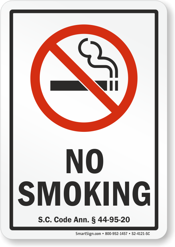 Use this South Carolina No Smoking Sign to easily mark areas where smoking is not permitted. Sign helps you comply with South Carolina Code Ann. § 44-95-20.