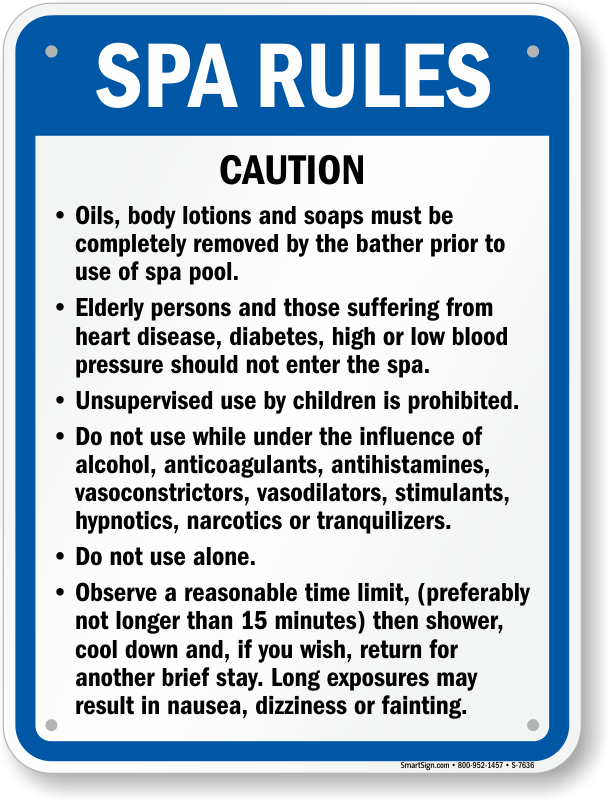 Swimming Pool Sign: Connecticut Spa Rules S-7636 Learn More...