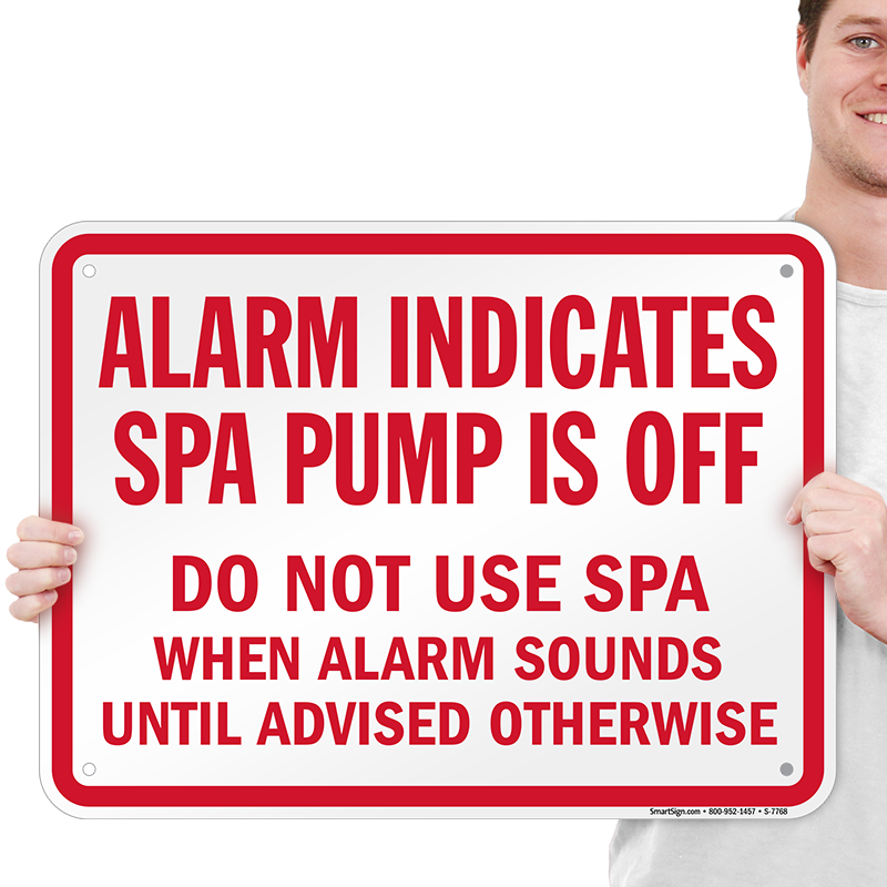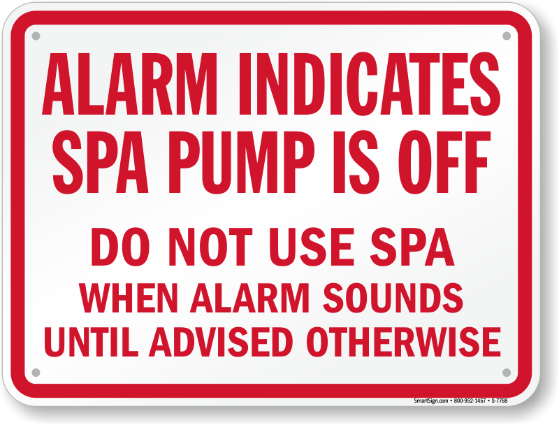 Florida Spa Alarm Sign: Alarm Indicates Spa Pump Is Off, Do Not Use Spa When Alarm Sounds Until Advised Otherwise S-7768 Learn More...