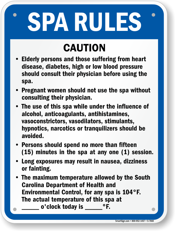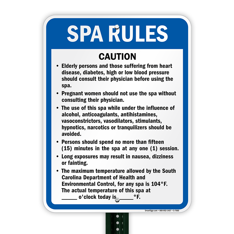Swimming Pool Sign: South Carolina Spa Rules S-7660 Learn More...