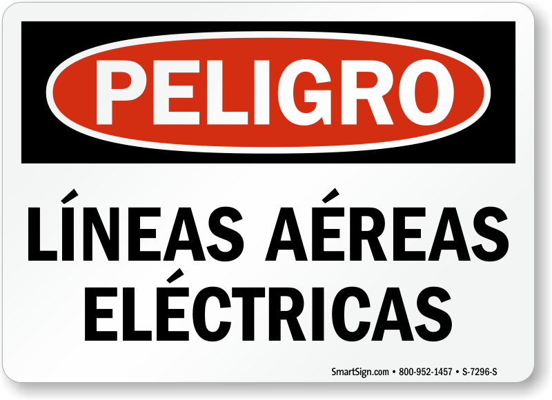Don't forget your Spanish speaking workers while giving out a safety message. This OSHA Danger sign in Spanish warns workers of the overhead power lines.
