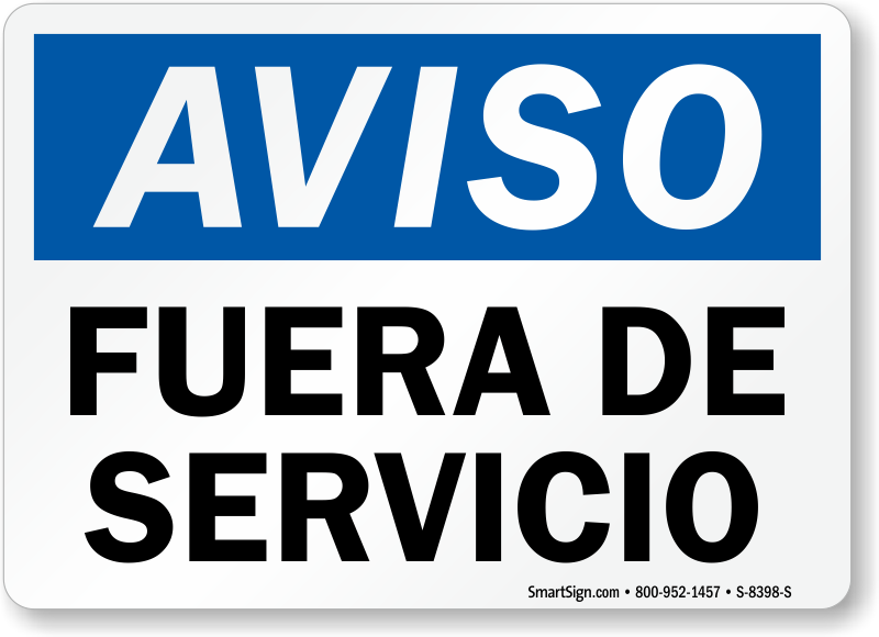 Notify workers when equipment is out of service and prevent its use. Use this OSHA sign with text in Spanish to convey the information.