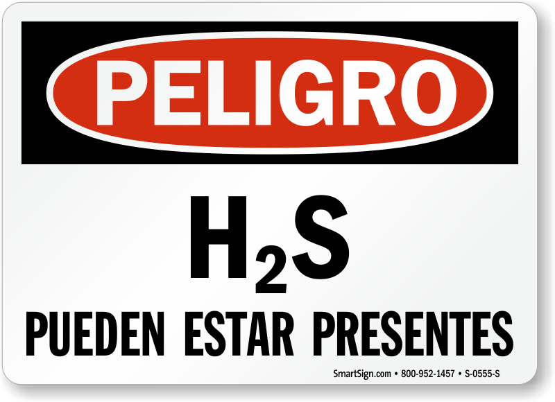 Spanish OSHA Danger H2S May Be Present Sign: Peligro - H2S Pueden Estar Presentes