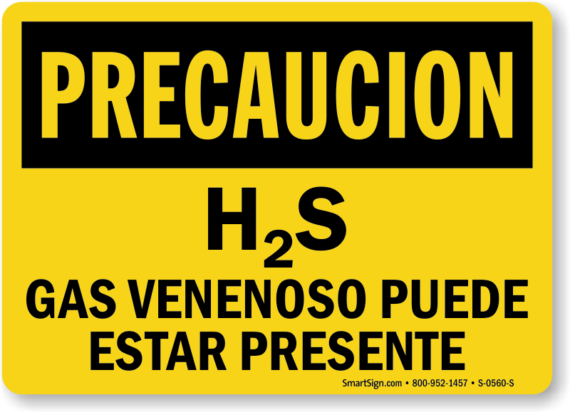 Spanish OSHA Caution H2S Poisonous Gas May Be Present Sign: Precaucion - H2S Gas Venenoso Puede Estar Presente