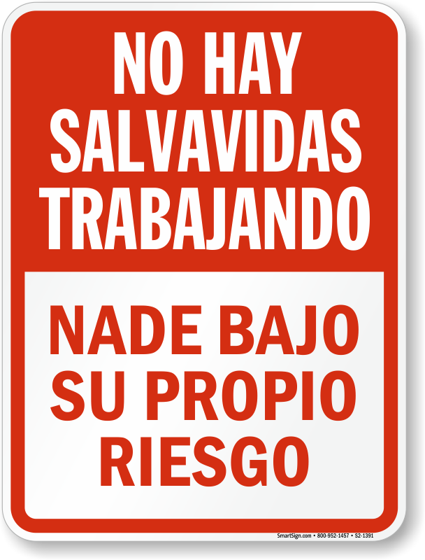 Spanish No Lifeguard on Duty Sign: No Hay Salvavidas Trabajando, Nade Bajo Su Propio Riesgo S2-1391 Learn More...