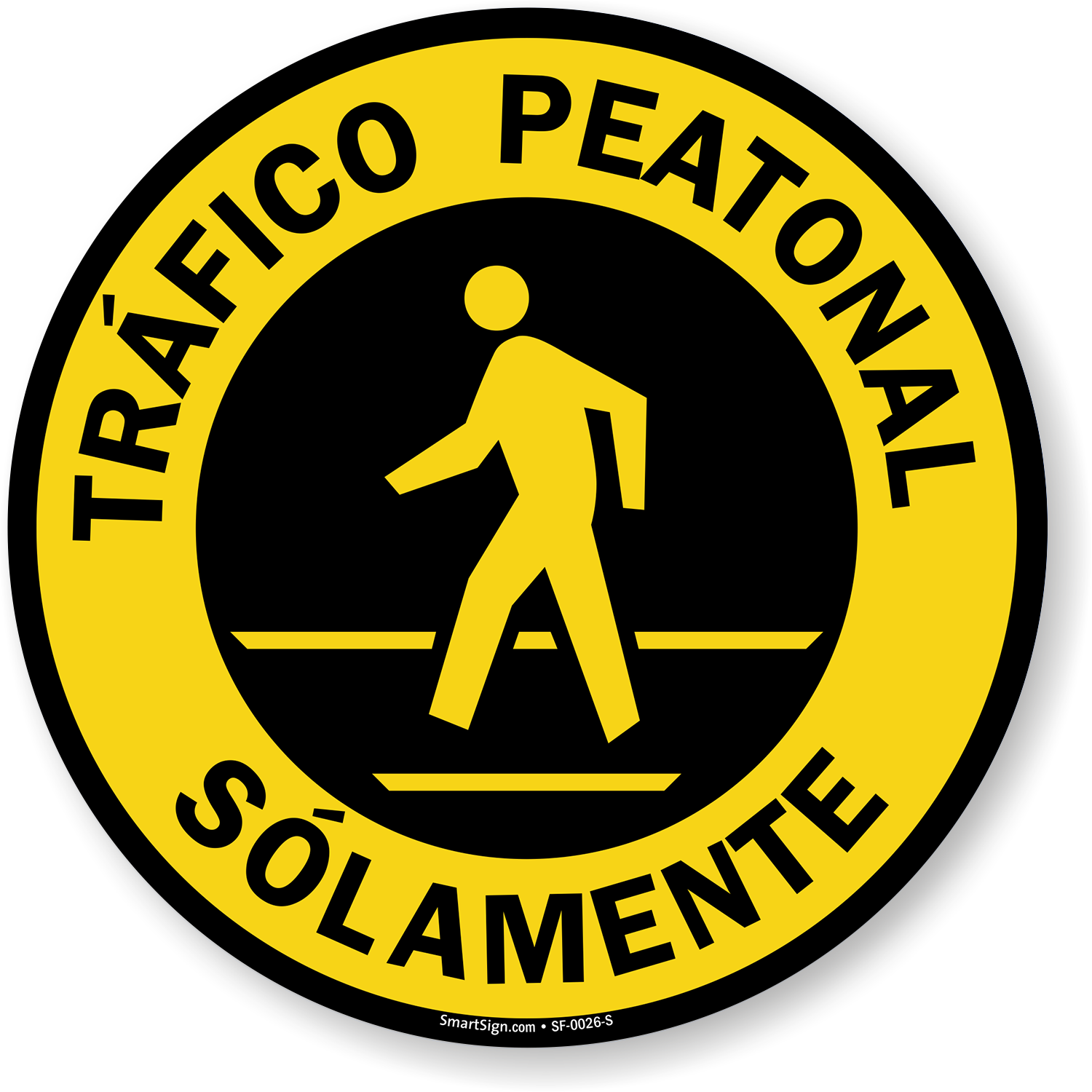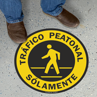 Control the flow of traffic in your facility with this 17 in. Diameter SlipSafeâ„¢ Spanish Pedestrian Traffic Only Floor Sign.