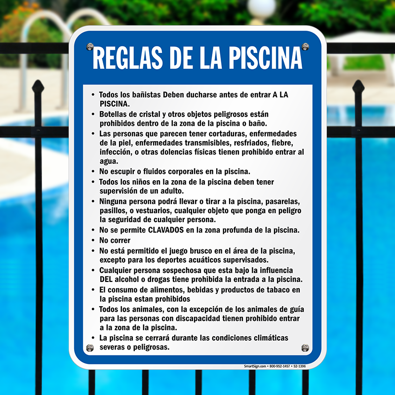 Spanish Pool Rules Sign: Reglas De La Piscina S2-1396 Learn More...
