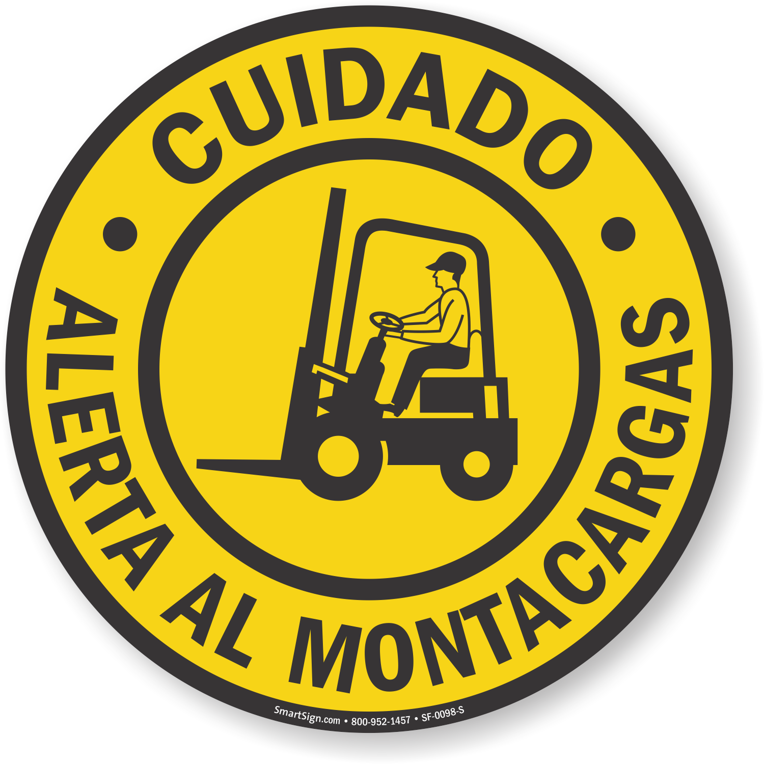 Apprise your Hispanic workers of forklift dangers with this 17in. Diameter SlipSafeâ„¢ Spanish Caution sign.