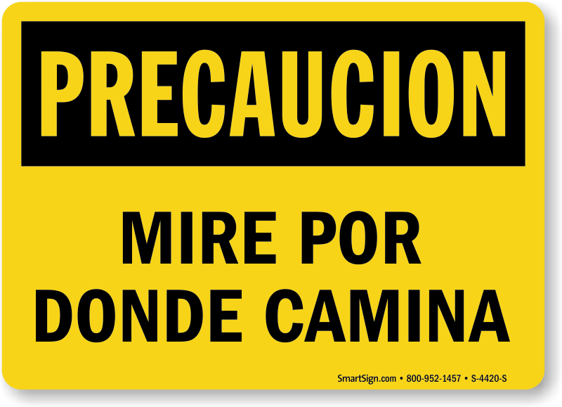 Induce caution among your Spanish speaking workers while they walk around your facility. Deploy this Spanish OSHA Caution Watch Your Step Sign for the purpose.