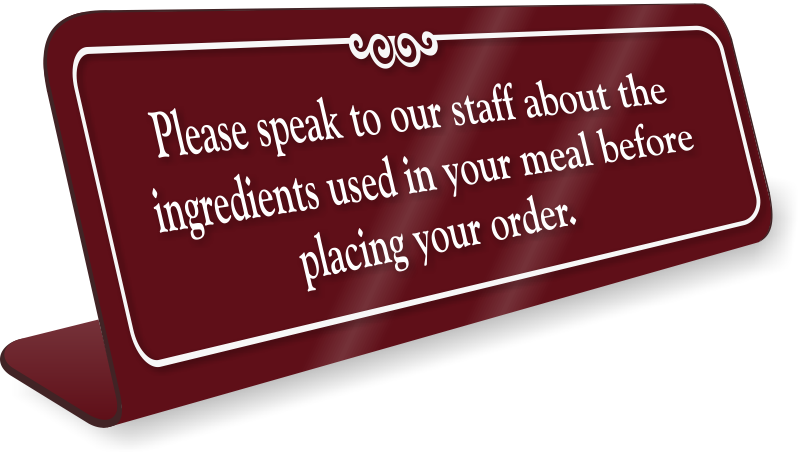 ShowCaseâ„¢ Desk Sign: Please Speak To Our Staff About The Ingredients Used In Your Meal Before Placing Your Order
