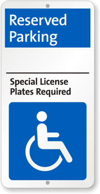 iParking Sign: Reserved Parking - Special License Plates Required (with Handicap Accessible Symbol) I-0096 Learn More...