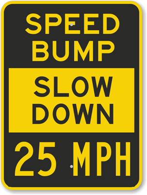 Slow Down Sign: Speed Bump Slow Down 25 MPH K-6697 Learn More...