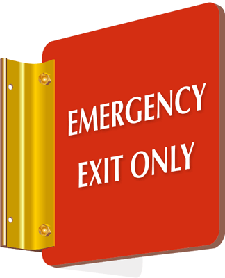 2-Sided Spot-a-Signsâ„¢, 6" x 6": Emergency Exit Only Projecting Sign SE-1744 Learn More...
