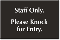 Staff Only Please Knock For Entry Engraved Sign helps prevent unauthorized people from entering a particular location in your facility.