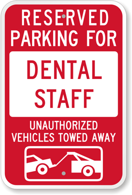 Tow Away Sign: Reserved Parking For Dental Staff : Unauthorized Vehicles Towed Away K-5084 Learn More...