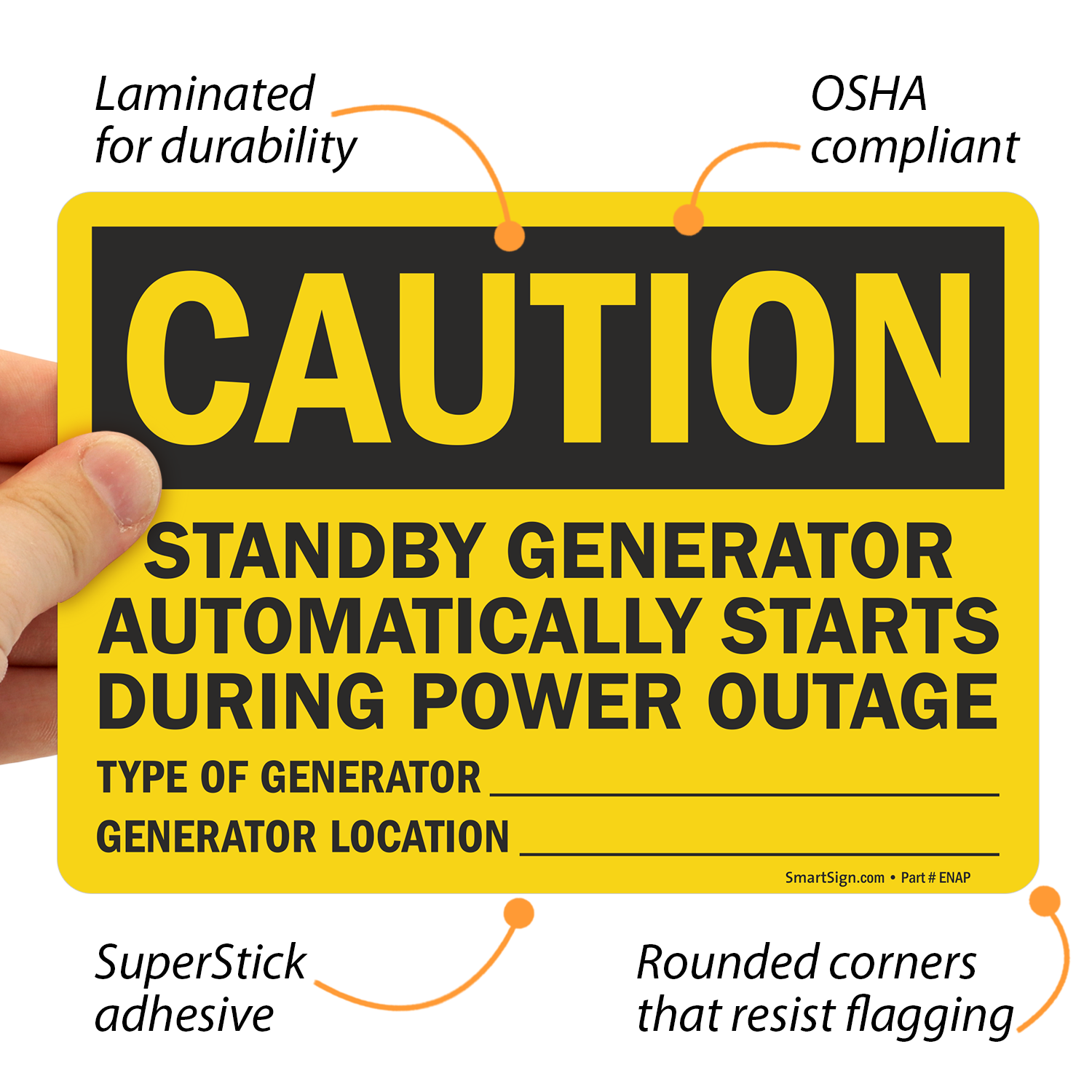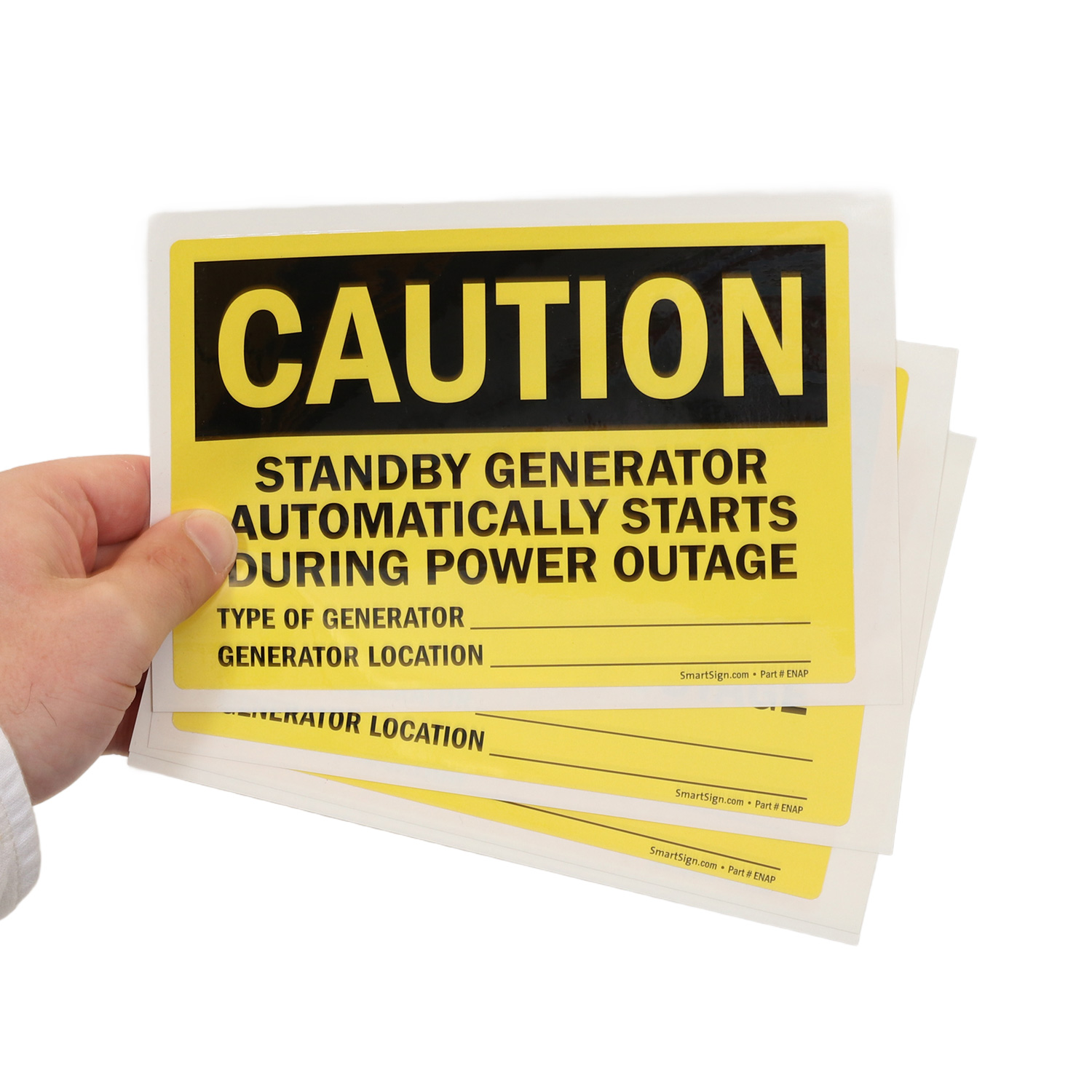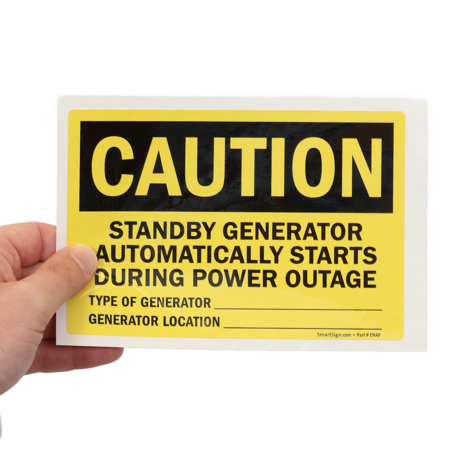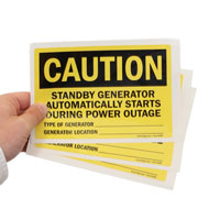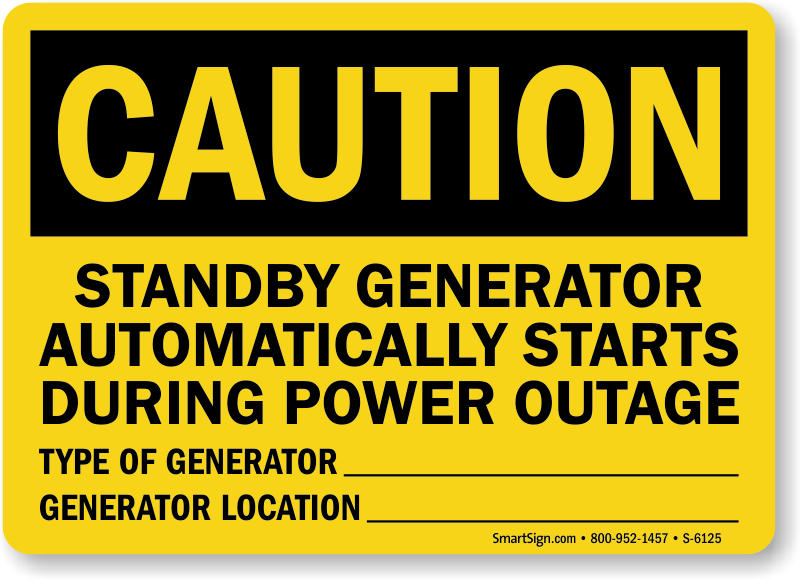Inform workers that in case of power outage, you have a generator on standby. Sign allows you to mention the generator's location and type.