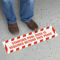 Custom Red Striped Pool Floor Sign: Customizable Stanford Pool Pass Is Required Beyond This Point SF-3053