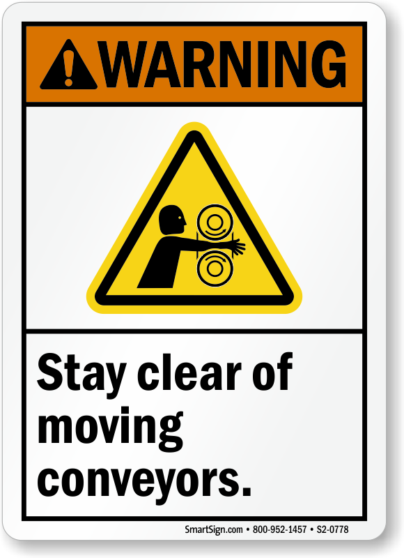 ANSI Warning Sign: Stay Clear Of Moving Conveyors (With Graphic) S2-0778