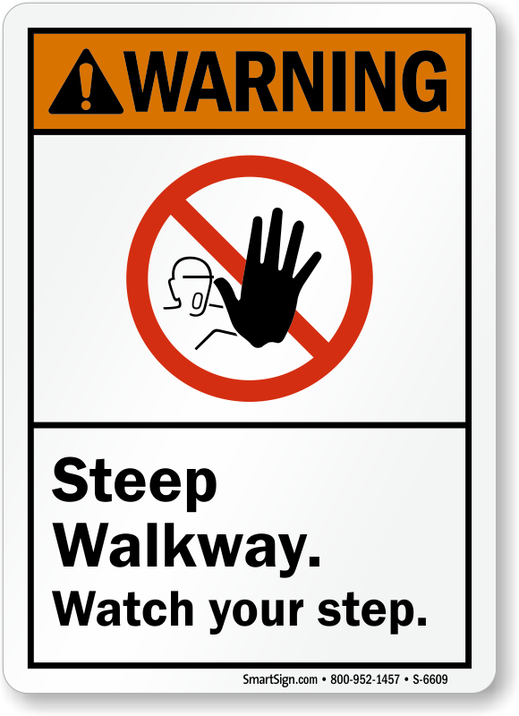 Guide people while they walk through a steep walkway. Install this ANSI sign with a stop hand symbol to make them cautious while walking.