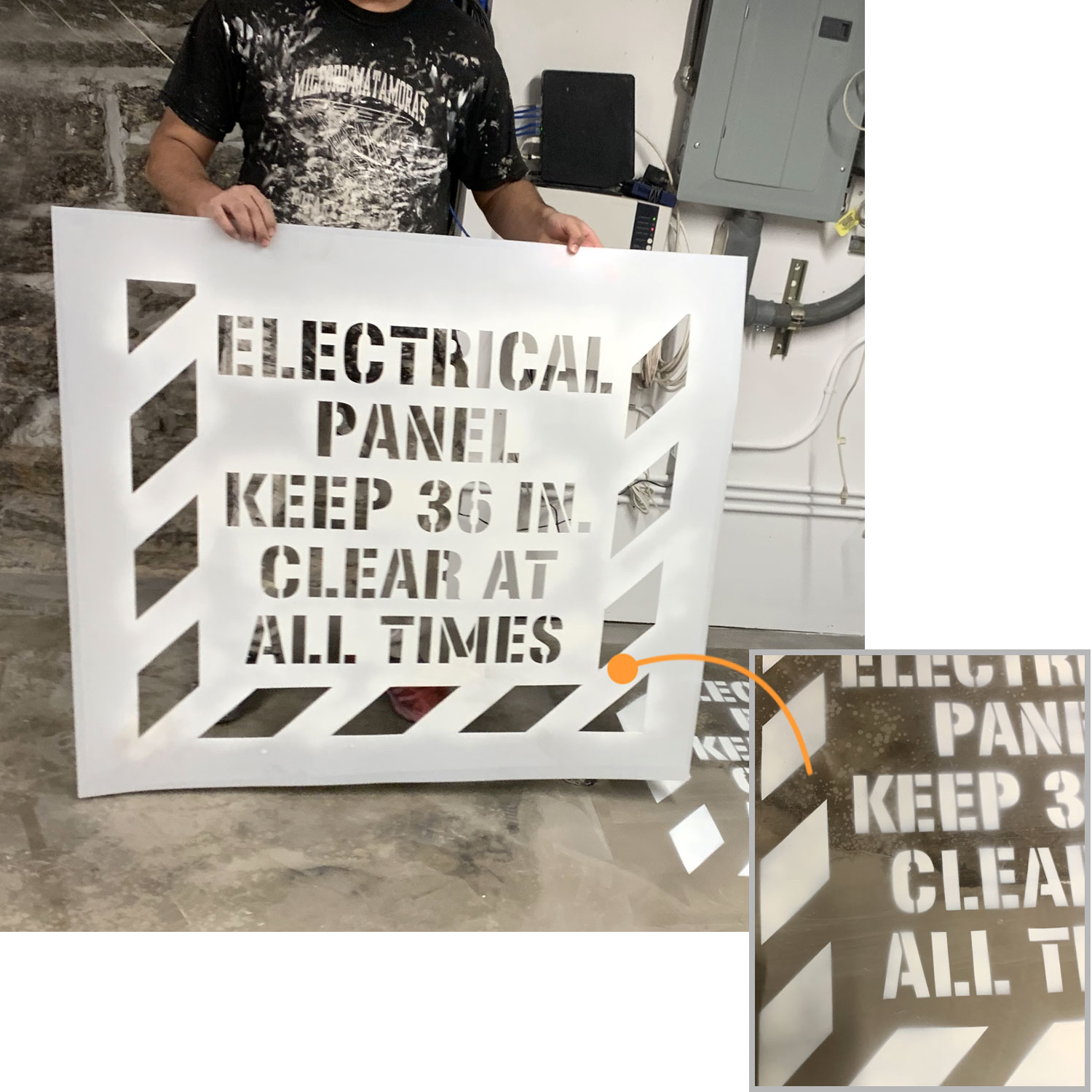 Electrical panels can be overlooked as a source of danger. Keep everyone safe by stenciling out a safety warning that instructs people to keep a distance of 36 inch clear near electrical panel in your facility. The stencil's polished interior makes both cleanup and removal a snap. Durable polyethylene material allows the stencils to be reused hundreds of times.