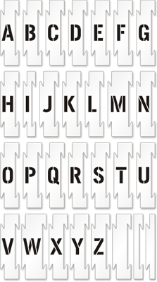 - Letter Stencils are easy to assemble and malleable over uneven surfaces. The interlocking system prespaces letters using the pavement font tested by FHA for maximum legibility.
