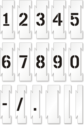 Made from 1/16" thick nonabsorbent polyethylene our Number Stencils are the fastest, hassle-free way to get that paint job done! Perfect for parking lots, airports, loading docks, boats, government facilities, military bases, garbage, cargo or shipping containers, these reusable stencils won't degrade like paper oil boards used by competitors.