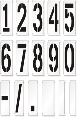 Made from 1/16" thick nonabsorbent polyethylene our Number Stencils are the fastest, hassle-free way to get that paint job done! Perfect for parking lots, airports, loading docks, boats, government facilities, military bases, garbage, cargo or shipping containers, these reusable stencils won't degrade like paper oil boards used by competitors.