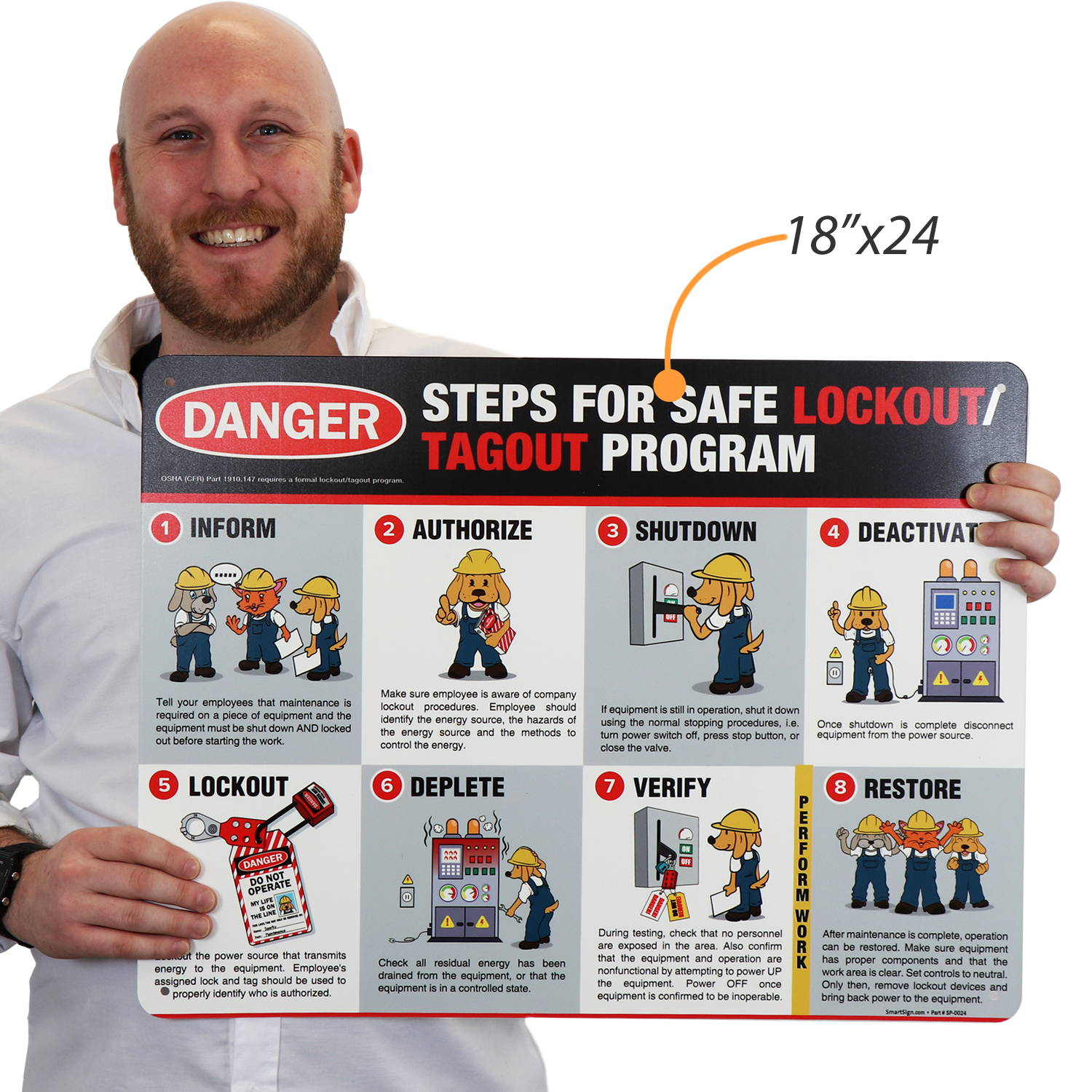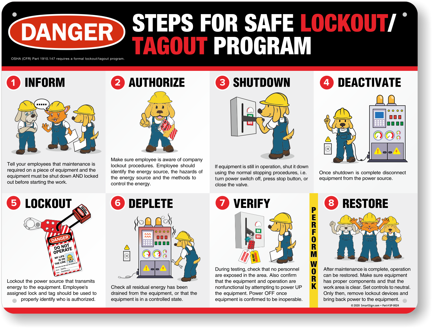 Safety Poster: Steps to Lockout Tagout Poster SP-0024