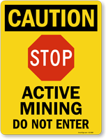 OSHA Caution Sign: Stop - Active Mining, Do Not Enter S2-5068