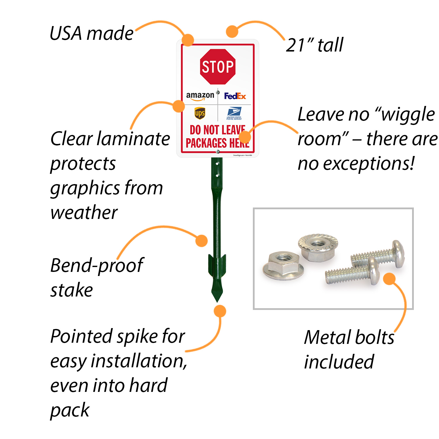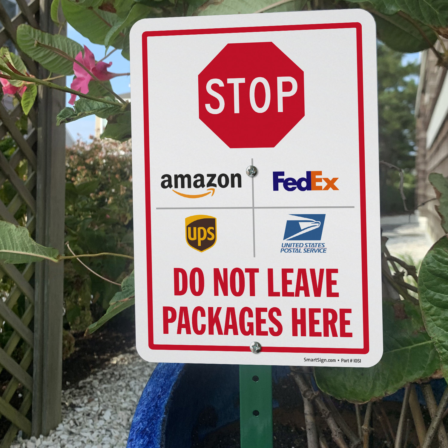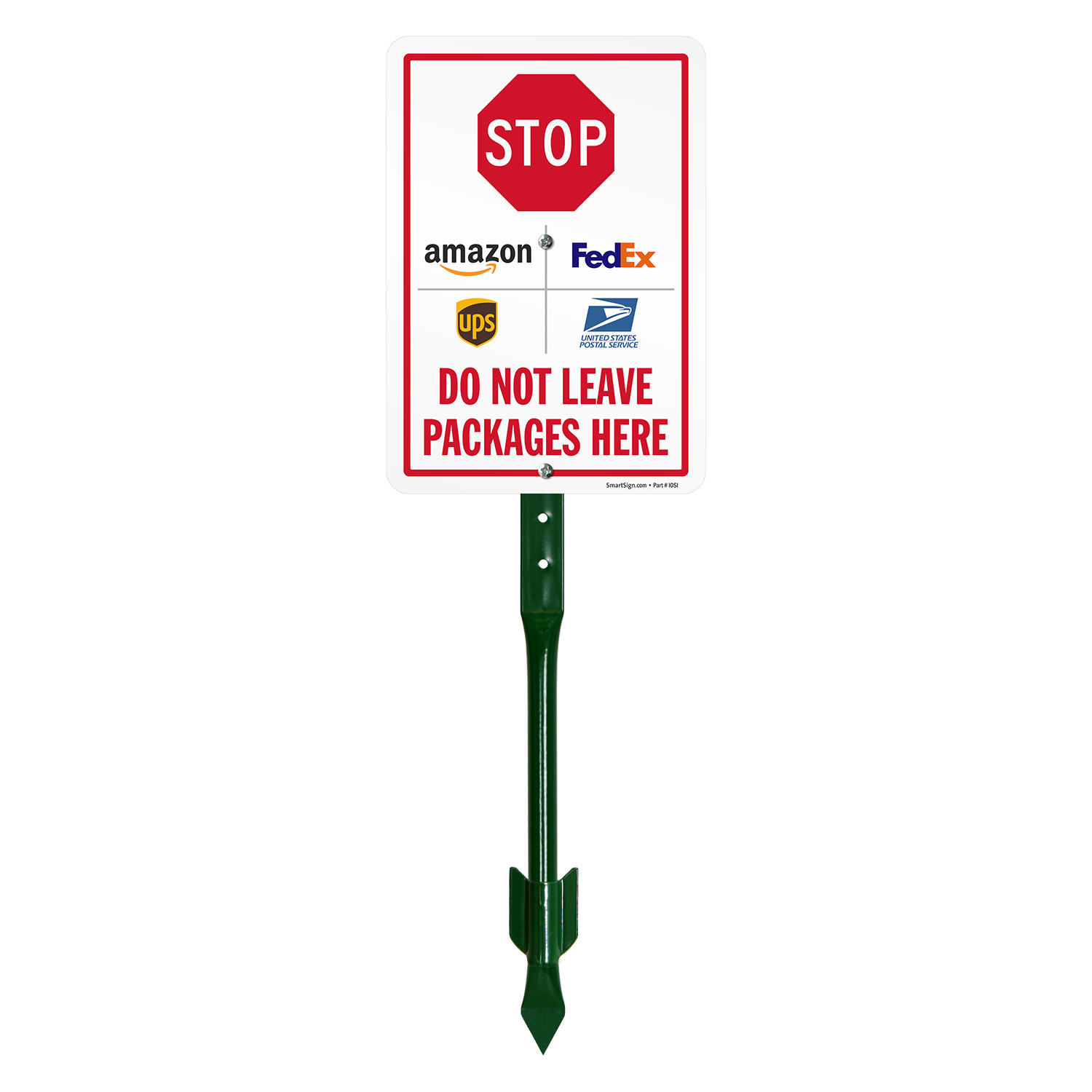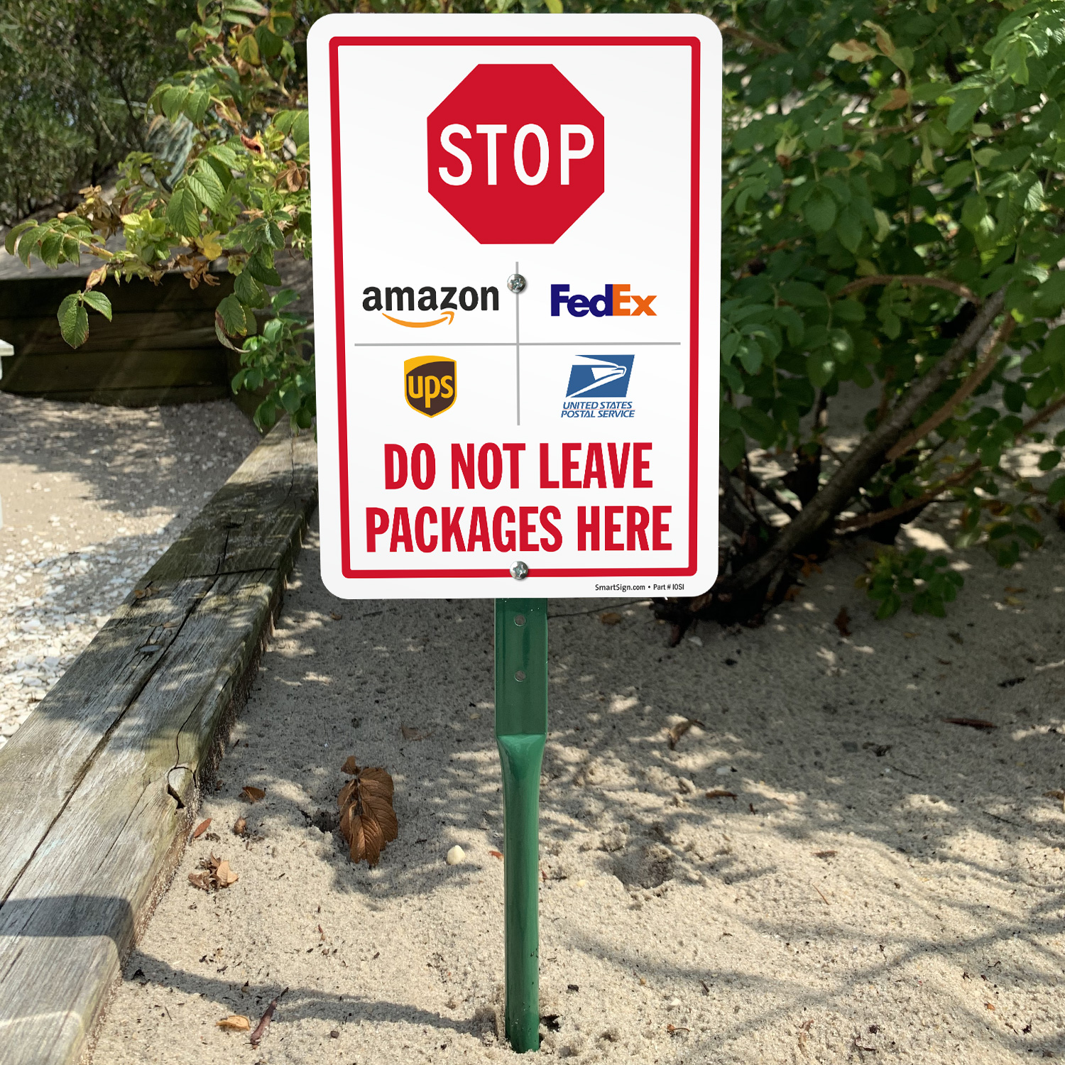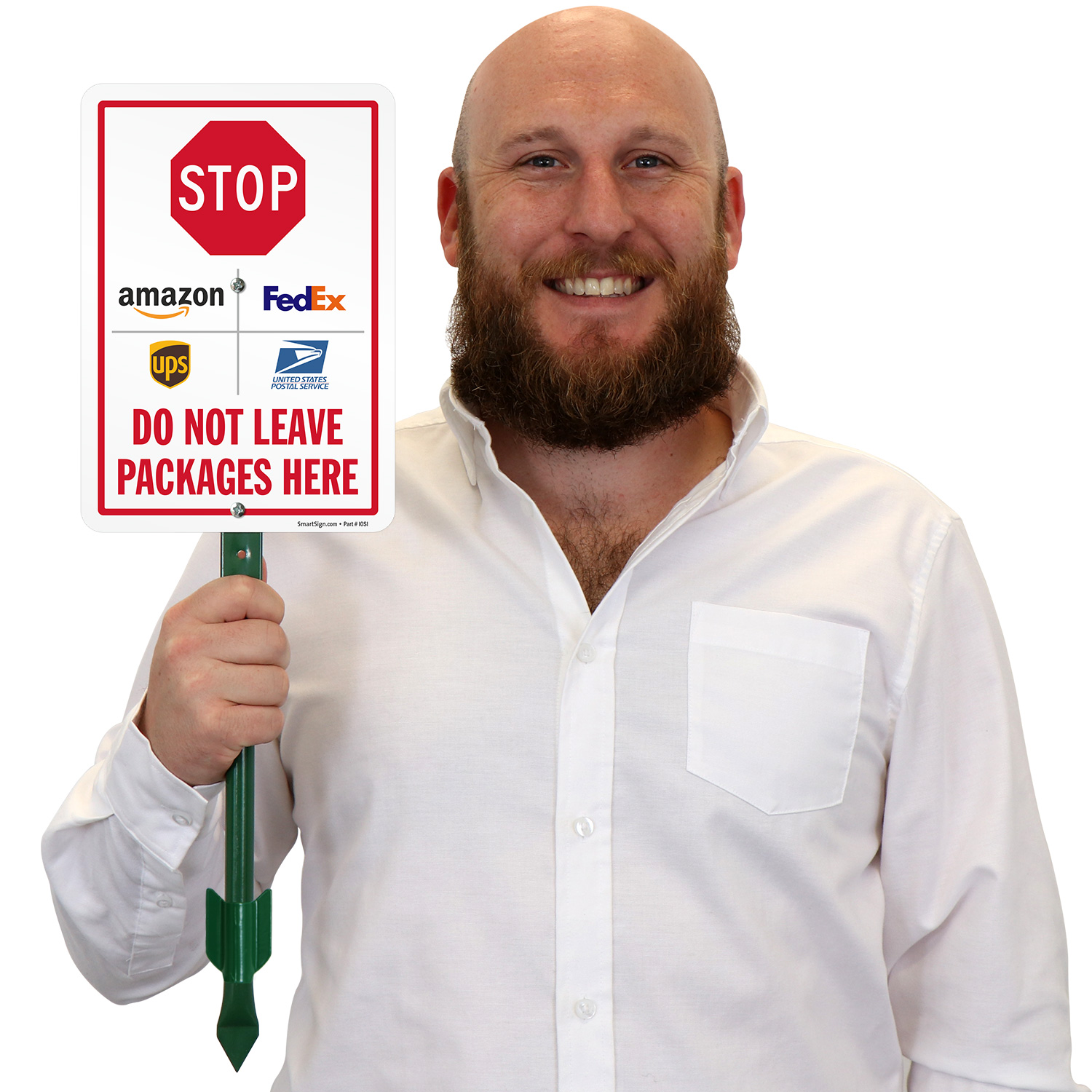 Package Delivery LawnPuppy Sign: Stop Do Not Leave Packages Here (Amazon, FedEx, UPS, USPS Logos) K2-6810